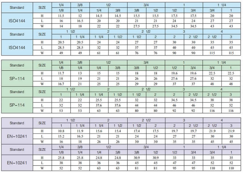 ابعاد مطابق با | Iso4144، Sp114، En-10241، Jis |